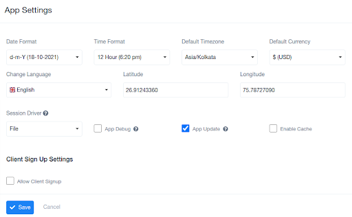 This section of settings enables the feature of self-login for clients. This is controlled by the admins and is easy to select depending on the choice of the organization. It offers the freedom of logging in and setting information by themselves for clients.