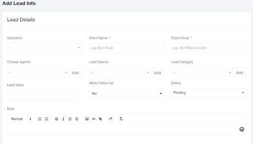 - NOTE: This records any important point that the lead has mentioned in their requirements which should be taken care of while any conversation.