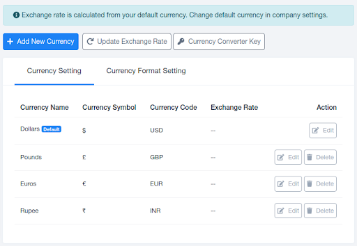 Arranging and customizing the finances of the organization in terms of the frequently used currencies is important. Thus, to ease this task and make the frequency of handling this task lesser than normal this section provides the space for customization. It allows the addition of different currencies transactions is being made so, that the users can switch to one of their convenient currencies for finance management.